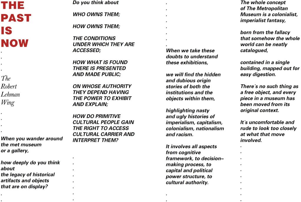 This studio challenges the authority and neutrality of the museum through the creation of Narrative Architectures—animated works, manifestos, formulas, pamphlets, and websites—that confront the museum’s complicity in historical erasure. By focusing on “loudreading” events within the MET, we explore how architecture can act as a tool for rebellious emancipation across multiple scales. The work interrogates institutional narratives and reimagines spatial frameworks that resist passivity, reclaim stories, and demand critical engagement.